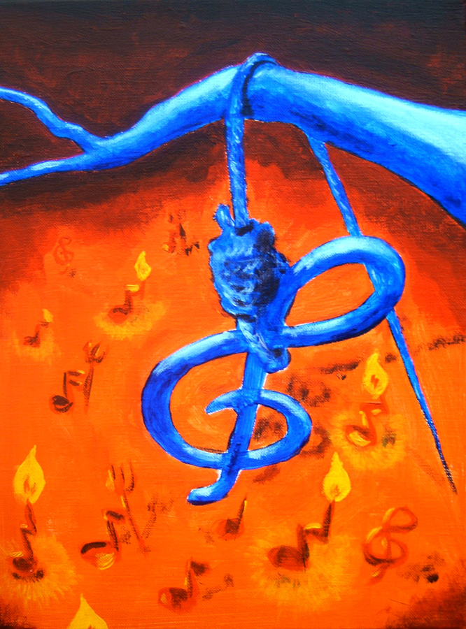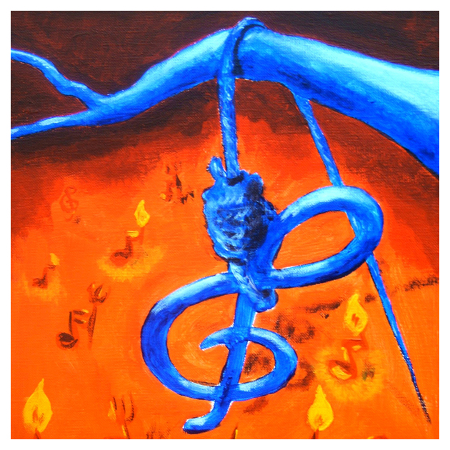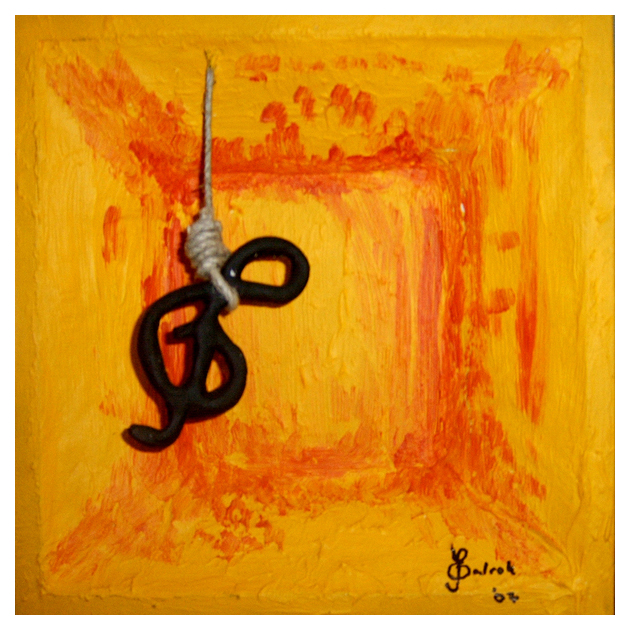 Die Realität verdrehen, zum Teil auf den Kopf stellen, Gegenständen und Symbolen ein anderes Gesicht geben, das ist meist das Ziel meiner Bilder. So auch bei einem immer wiederkehrenden Motiv von mir, dem erhängten Notenschlüssel. Dieser hat es auch in meine Signatur geschafft.